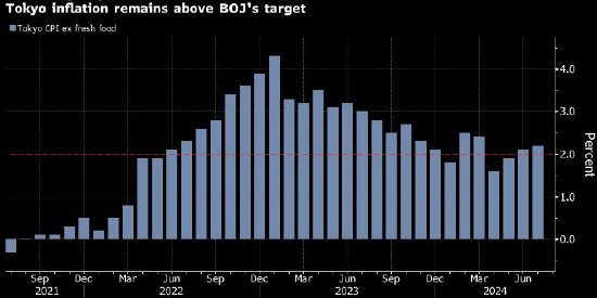 东京通胀率7月份连续第三个月加速,日本央行政策委员会下周开会时可能加息的大门依旧敞开。