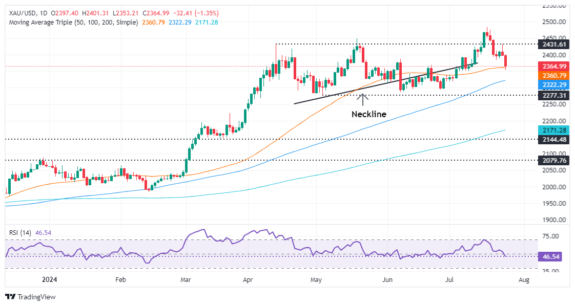 FXStreet分析师Christian Borjon Valencia写道,在周三收盘跌破2400美元/盎司后,金价周四进一步扩大跌势。正如刚刚跌破50中性线的相对强弱指数(RSI)所描绘的那样,短期势头有利于黄金卖家。