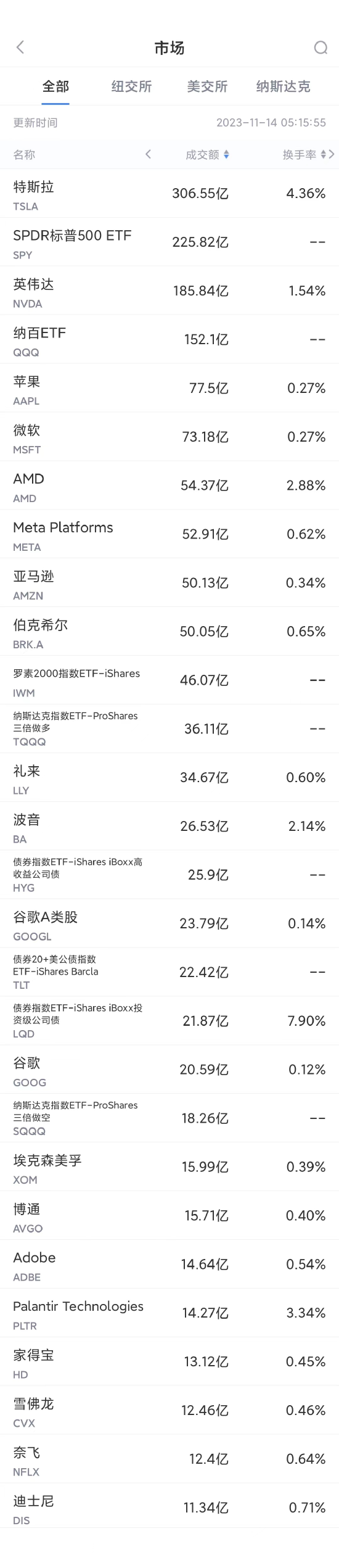 【XM最新官网】11月13日美股成交额前20:英伟达推出最新高端AI芯片,分析师料其营收大涨