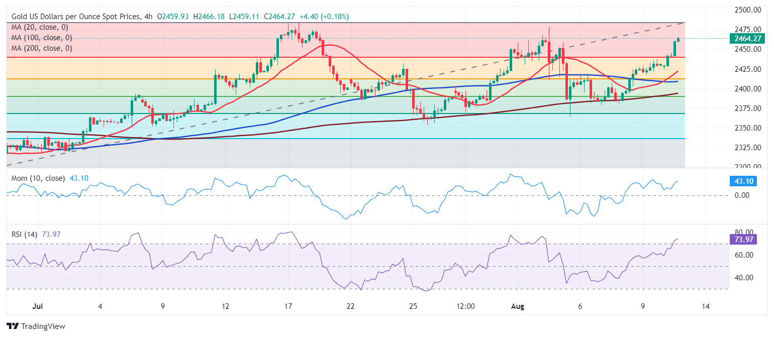 周二(8月13日)亚市盘中,现货黄金在昨日暴涨后略微回落,目前金价交投在2466美元/盎司附近。FXStreet首席分析师Valeria Bednarik撰文,对黄金技术前景进行分析。