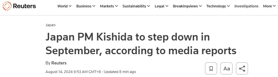 日本共同社也报道了这一消息。日本东京电视台记者篠原裕明称,据悉岸田将于当地时间14日11时30分举行紧急记者会发表这一决定。