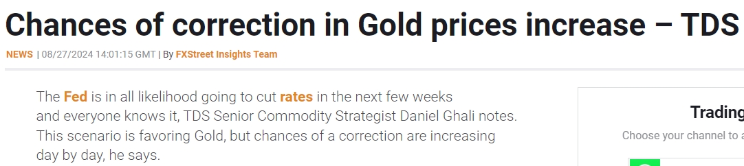 道明证券高级商品策略师Daniel Ghali表示,美联储很有可能在未来几周内降息,这是众所周知的。他表示,这种情况对黄金有利,但回调的可能性正在日益增加。宏观基金仓位指标闪现警告信号,须谨慎抛售活动加剧。