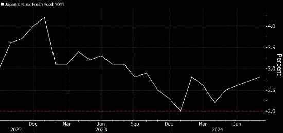 日本总务省周五公布的数据显示,当月不包括生鲜食品的消费者价格指数(CPI)同比上涨2.8%,涨幅高于7月的2.7%。这一结果符合普遍预期。