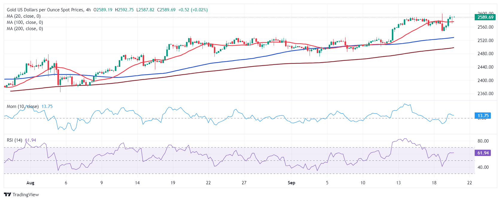 周五(9月20日)亚市盘中,现货黄金震荡走高,目前交投于2591.78美元/盎司,略低于本周创下的历史新高。FXStreet首席分析师Valeria Bednarik撰文,对黄金技术前景进行分析。