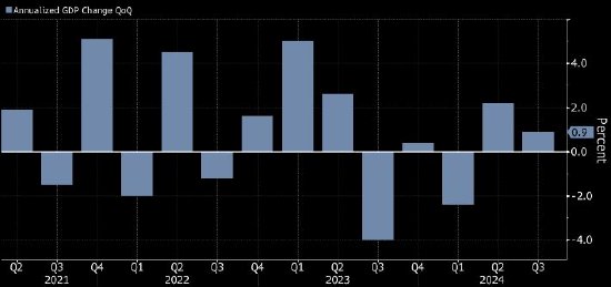 日本政府周五报告,第三季度国内生产总值(GDP)环比折年率增速放缓至0.9%,远低于第二季度下修后的2.2%,不过略高于普遍预期的0.7%。