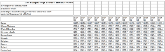 美东时间11月18日周一,美国财政部公布国际资本流动报告(TIC)显示,美国两大“债主”9月的美债持仓均下降。
