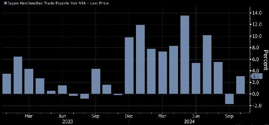 日本10月出口增速超预期,尽管主要海外市场的不确定性加剧,但全球需求仍保持基本稳定。