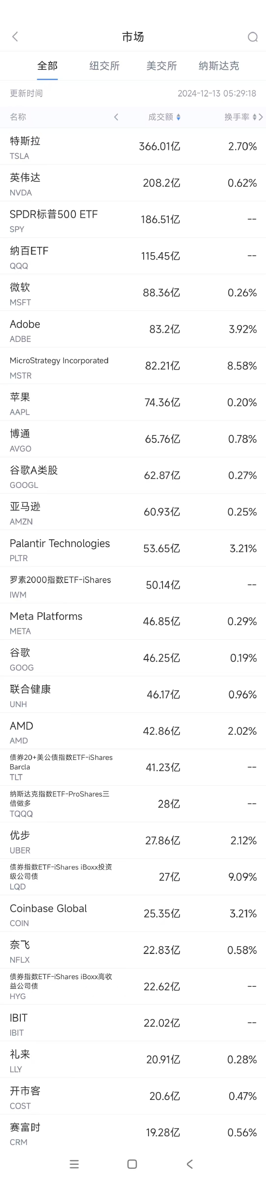 【XM最新官网】12月12日美股成交额前20:Adobe业绩欠佳股价重挫13.7%