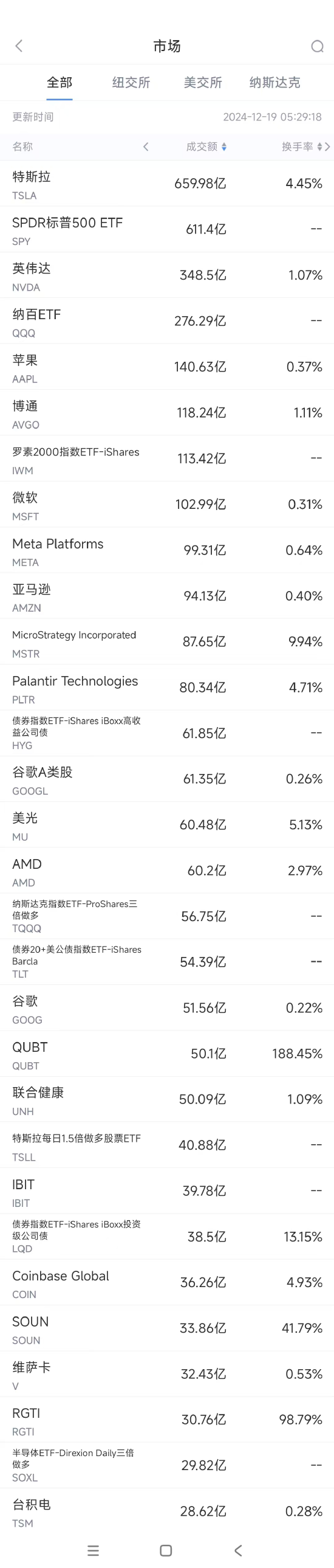 【XM账户资讯】12月18日美股成交额前20:马斯克因涉密安全问题受到美军方审查