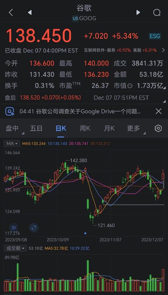 【XM最新官网】Alphabet股价大涨 人工智能模型Gemini问世缓解市场地位担忧