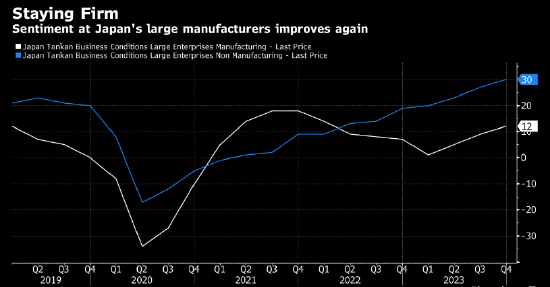 日本企业信心第四季度全面回升,在央行下周召开政策会议之前释放出了积极信号。