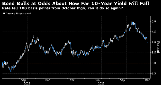 DoubleLine Capital的Jeffrey Gundlach认为,10年期美债收益率将跌向3%区间的低段,美联储明年可能会把现金利率目标下调整整两个百分点。昔日的债券之王比尔·格罗斯则对这种乐观看法不屑一顾,称收益率已接近4%的应有水平。