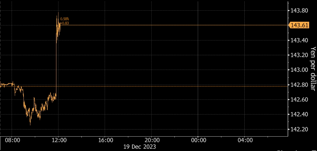 这一走势反映了一些投资者的失望情绪,他们原本押注日本央行会出乎市场意料加息或者对提早行动发出信号。在美联储暗示2024年政策转向之后,日元上周触及了四个月高点。日元此前的涨势为植田和男减轻了一些压力,他在最近几次会议期间都面临着将日元推低至三十年新低的风险。