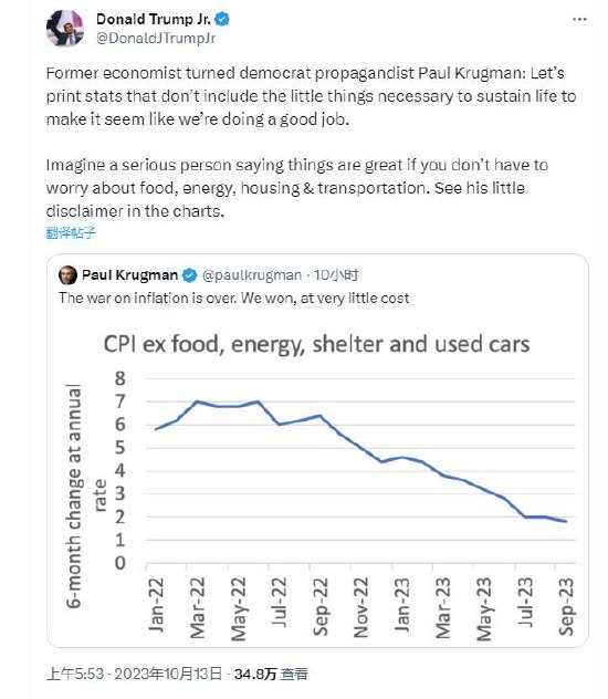 【XM最新官网】诺奖得主称美国赢了抗通胀战争,遭特朗普长子痛批