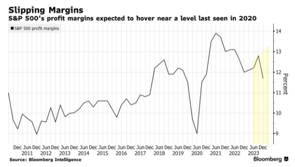 利润率——衡量企业从销售额中挤出多少利润的指标——将成为华尔街关注的焦点。汇编数据显示,经过三个季度的改善,净利润率预计将降至11.7%左右,为2020年以来的最低水平。