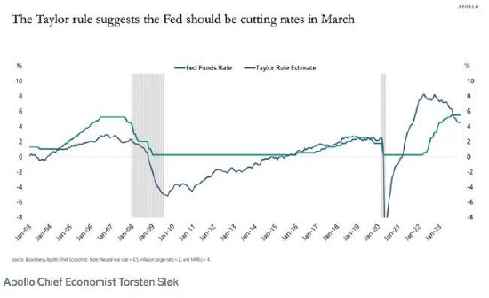 阿波罗全球管理公司首席经济学家托尔斯滕·斯洛克(Torsten Slok)认为,美联储3月份开始降息的可能性可能仍然很大,尽管市场推迟了美联储开始放松政策的时间表。