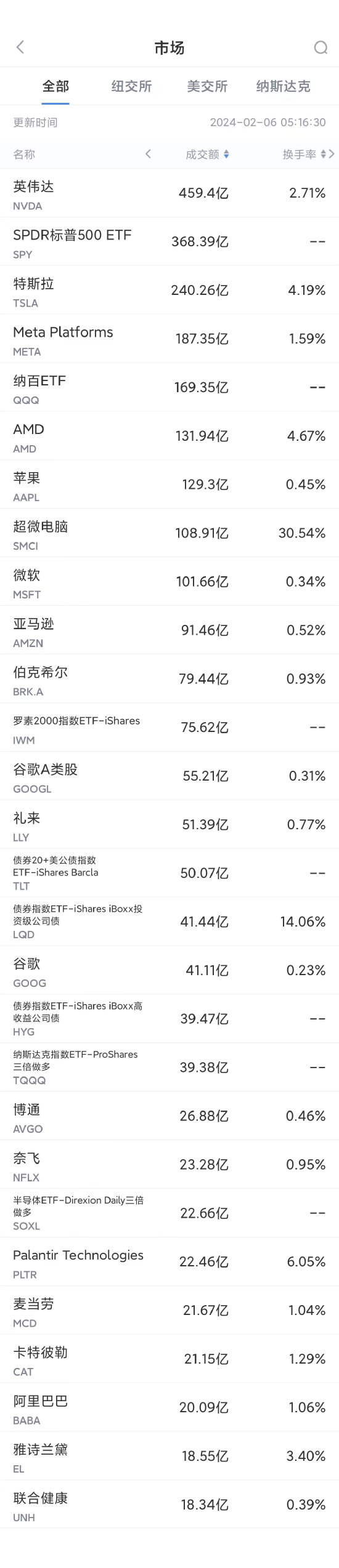 【XM最新官网】2月5日美股成交额前20:英伟达再创新高,市值超17000亿美元