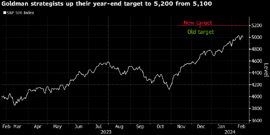 在为标普500指数设定2024年目标后几个月,随着股市本月突破5000点重要里程碑,高盛策略师第二次上调了他们的预测。