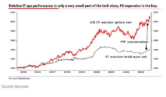 爱德华兹说:“我回想起2000年,当时关于IT泡沫的说法非常有说服力,就像现在一样。但与1999年一样,持怀疑态度的投资者现在面临的问题是,如果过早退出,抛售或减持美国IT股可能会破坏业绩。”