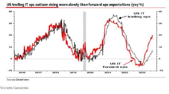 爱德华兹表示:“到目前为止,美国IT公司的盈利速度还没有达到预期的增长速度。这种不匹配带来了风险。”
