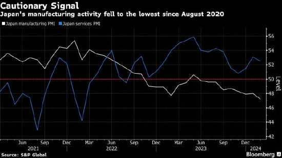 在制造业出现最新疲软迹象之前,由于国内需求疲软,加之外部需求前景不稳定,日本经济在2023年底意外陷入衰退。