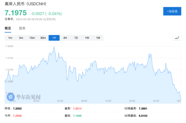 离岸人民币兑美元报7.2003元,较周三纽约尾盘涨97点,连涨两日,创近两周新高,截至发稿涨势回落。