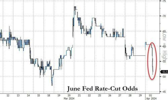 美联储六月降息概率已跌至50%以下