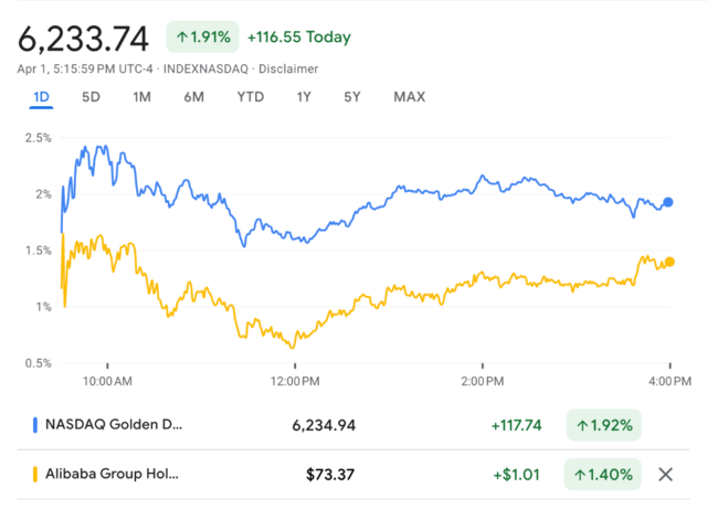 隔夜美股,热门中概股普涨,纳斯达克金龙中国指数(HXC)收涨1.9%,跑赢大盘,连涨三日至3月21日以来收盘高位。中概互联网指数ETF(KWEB)涨2.25%,阿里涨1.4%,京东涨超1.3%。