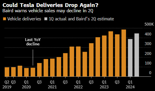 Robert W. Baird分析师表示,继第一季度意外下滑后,特斯拉本季度的汽车销量可能再次下降。