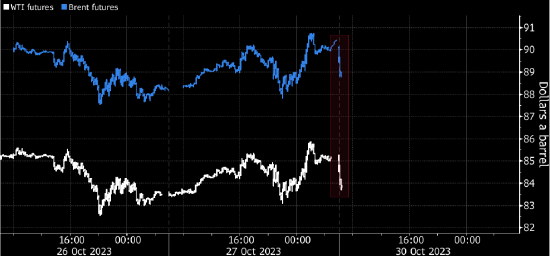 全球基准布伦特油价跌向每桶89美元,上周五创下两周来最大涨幅;WTI原油期货跌至每桶84美元附近。虽然以色列派出军队和坦克进入加沙地带北部,以报复10月7日的袭击事件,但以方采取的是逐日进攻方式,而不是大规模进攻。
