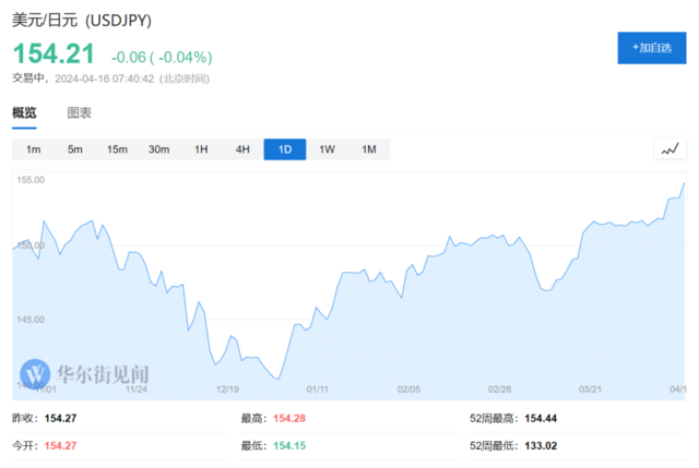日元兑美元持续跌破154关口,连续四个交易日创1990年来新低,超过了一些分析师警告可能引发日本直接干预的水平。日本前货币政策高级官员最近强调,如果汇率突破155,可能会进行干预。