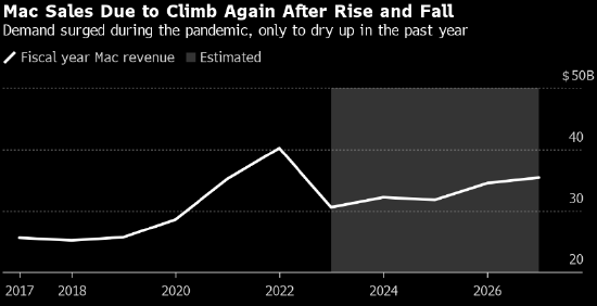 Mac电脑在假日季的销售预计将增长5%左右,在刚刚开始的财年收入料增长5.5%。