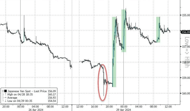 突如其来的行情大逆转难免引发官方干预的猜想,此后也有媒体报道援引知情人士称,当天日本财务省出手大举买入日元,支撑了汇率,是继2022年10月出手后,日本当局再次对汇市进行实际干预。