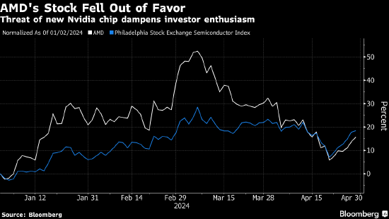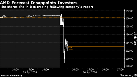 芯片制造企业AMD盘后一度下跌9.1%,该公司对人工智能处理器的预测令市场失望。