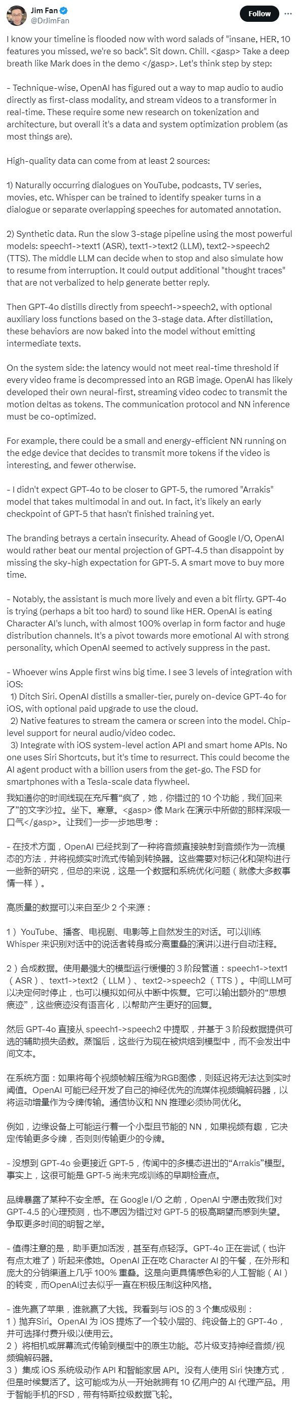 英伟达高级研究科学家Jim Fan:这可能会成为从一开始就拥有10亿用户的AI产品,OpenAI之于苹果类似于“用于智能手机的FSD”。