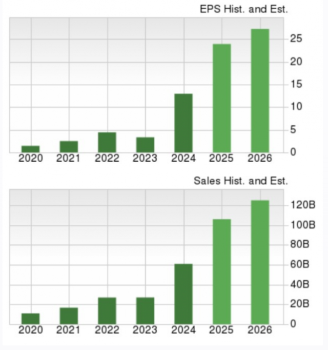毫无疑问,英伟达业绩增速和对其AI芯片的需求仍在大幅增长,Zacks收益ESP(预期意外)为显示,英伟达的盈利可能再次超过预期,最准确的估计是每股收益为5.68美元。