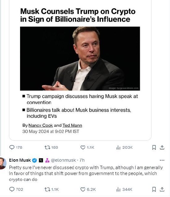 【XM最新官网】马斯克否认曾与特朗普讨论加密货币