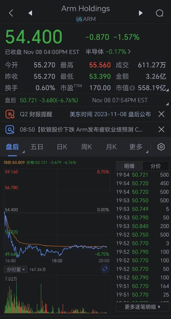 Arm股价在盘后交易一度重挫9%,恐悉数回吐9月上市以来的涨幅。截至周三收盘,该公司股价自上市以来累计上涨6.7%。